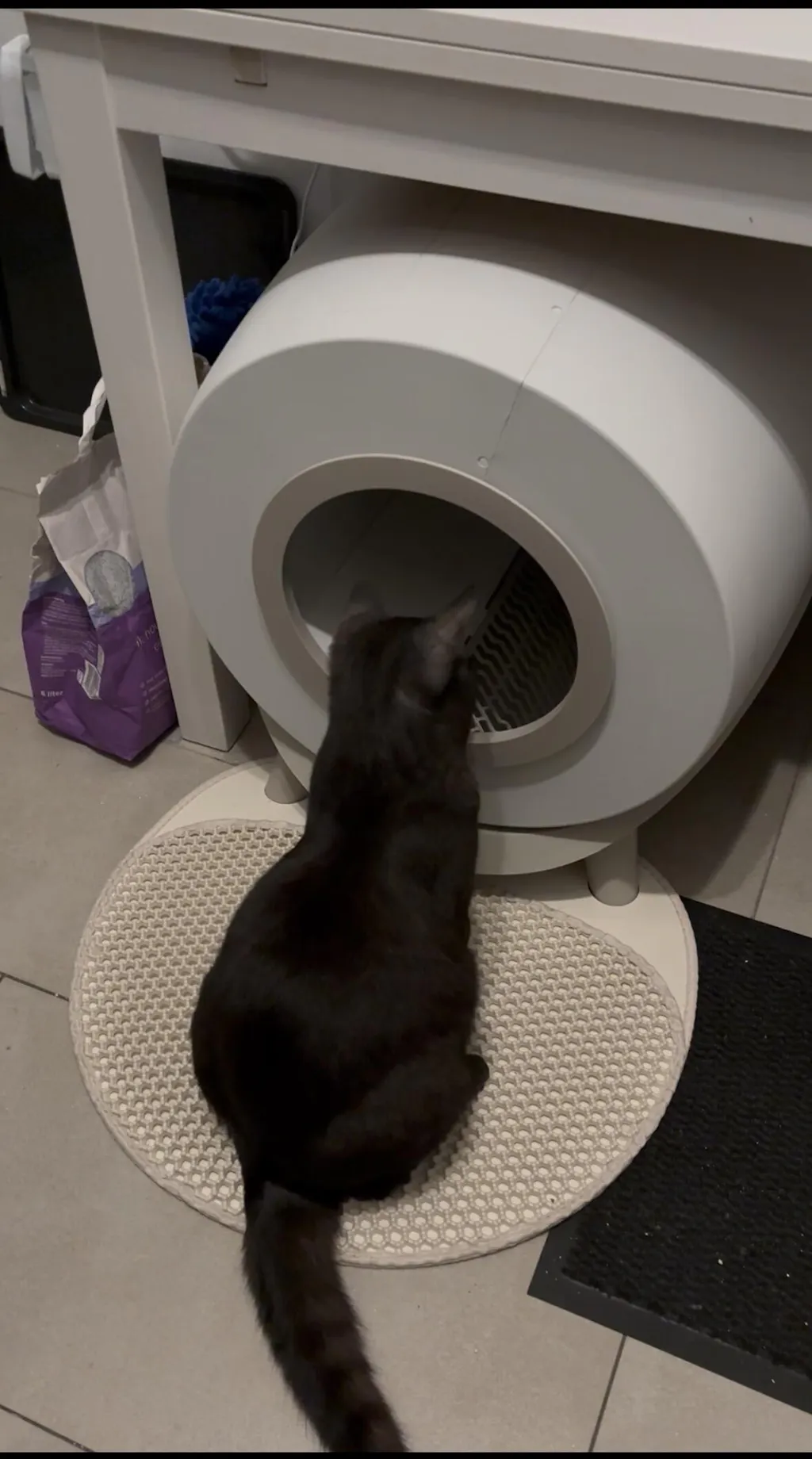 Recomiendo categóricamente la caja de arena de Revo-lo. Silenciosa, bonita, y mis gatos están muy contentos con ella. Y yo también. Gracias infinitas